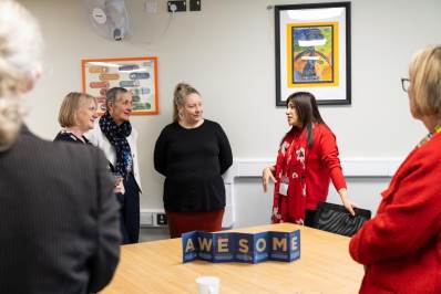 The visitors toured classrooms, met staff and pupils and joined in the school’s ‘daily mile’ wellbeing activity. The visitors heard and saw first-hand how Woodside is developing innovative approaches to mental health support for children and young people with autism.